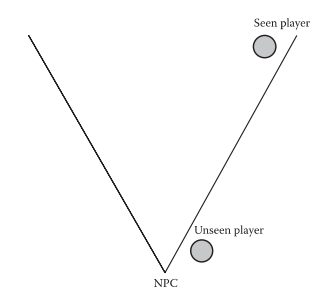 从上图可以看到如果目标在扇形外,即使离得很近AI也看不到,怎么样优化这一点呢?