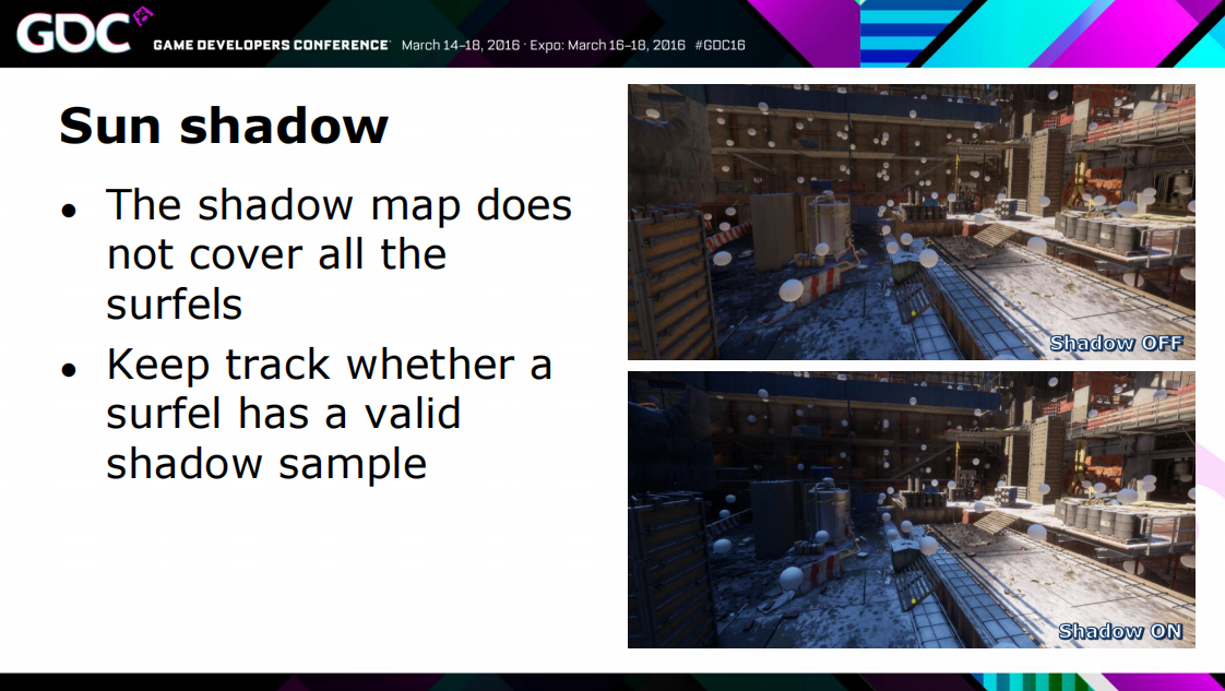 // mainlight shadowfloat4shadowCoord=TransformWorldToShadowCoord(surfel.position);if(!BEYOND_SHADOW_FAR(shadowCoord)){// Shadow is valid, sample and update cacheatten=SampleShadowmap(TEXTURE2D_ARGS(_MainLightShadowmapTexture,sampler_MainLightShadowmapTexture),shadowCoord,GetMainLightShadowSamplingData(),GetMainLightShadowParams(),false);// Update shadow cache with new valid result_shadowCache[surfelGlobalIndex]=atten;}else{// Shadow is invalid, use cached result if availableatten=_shadowCache[surfelGlobalIndex];}