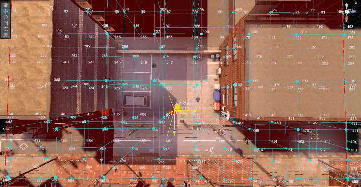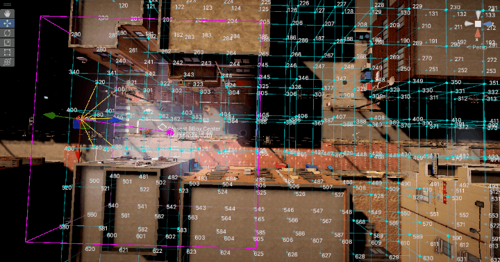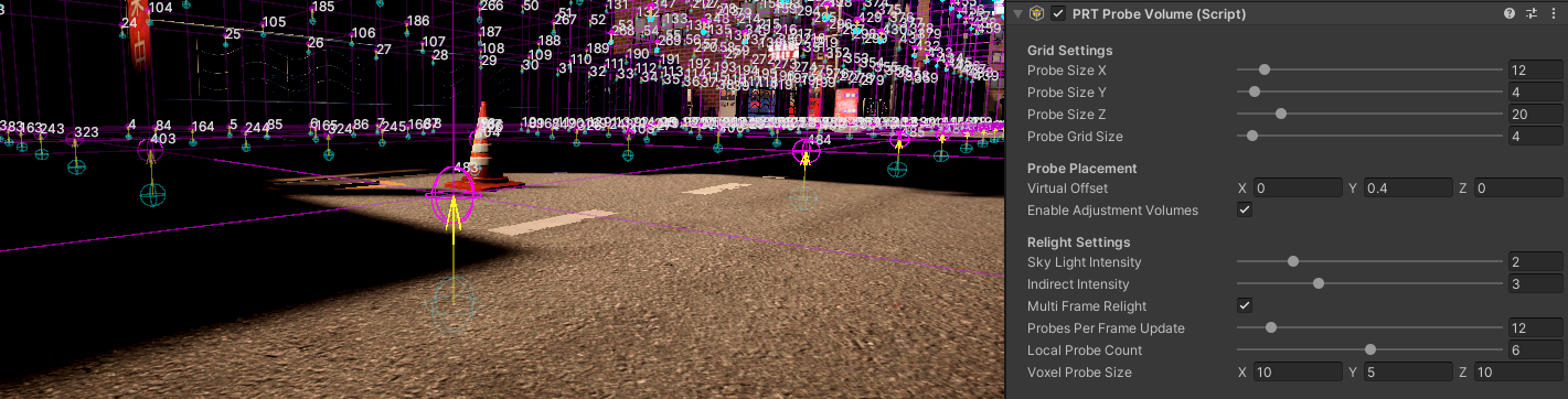 privatevoidCalculateCameraBoundingBox(){if(!_mainCamera||Probes==null||Probes.Length==0)return;Vector3cameraPos=_mainCamera.transform.position;// Convert camera position to grid coordinates relative to Volume corner// Volume position is the corner (0,0,0) of the probe gridVector3gridPos=(cameraPos-transform.position)/probeGridSize;// Calculate the maximum valid bounding box position for each axisintmaxX=Mathf.Max(0,probeSizeX-_grid.X);intmaxY=Mathf.Max(0,probeSizeY-_grid.Y);intmaxZ=Mathf.Max(0,probeSizeZ-_grid.Z);// Calculate ideal bounding box center (grid coordinates)Vector3IntidealCenterGrid=newVector3Int(Mathf.RoundToInt(gridPos.x),Mathf.RoundToInt(gridPos.y),Mathf.RoundToInt(gridPos.z));// Calculate ideal bounding box minimum cornerVector3IntidealBoundingBoxMin=newVector3Int(idealCenterGrid.x-_grid.X/2,idealCenterGrid.y-_grid.Y/2,idealCenterGrid.z-_grid.Z/2);Vector3IntnewBoundingBoxMin=FindClosestValidBoundingBox(cameraPos,idealBoundingBoxMin,maxX,maxY,maxZ);// Check if bounding box has changedintnewHash=newBoundingBoxMin.GetHashCode();if(newHash!=_lastBoundingBoxHash){_boundingBoxMin=newBoundingBoxMin;_lastBoundingBoxHash=newHash;_boundingBoxChanged=true;// Update bounding box world coordinatesVector3worldMin=transform.position+newVector3(_boundingBoxMin.x*probeGridSize,_boundingBoxMin.y*probeGridSize,_boundingBoxMin.z*probeGridSize);Vector3worldSize=newVector3(_grid.X*probeGridSize,_grid.Y*probeGridSize,_grid.Z*probeGridSize);_currentBoundingBox=newBounds(worldMin+worldSize*0.5f,worldSize);}else{_boundingBoxChanged=false;}}